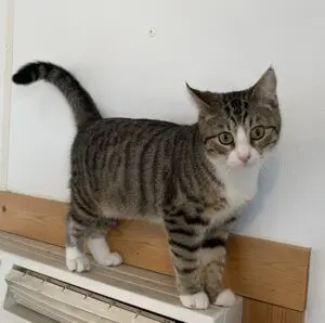 Casey was found as a stray at a nearby convenience store. She is full of energy and super playful. She loves catnip and toys, and will play the day away, but when she is done she lets us know it. Although Casey lives among the other kitties in our Cat Room, she has shown a tendency to go after another cat if the mood strikes, so she would need to be the only feline in her new family.