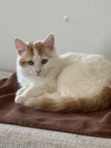Chili is an energetic and affectionate little kitten, one of Crinkle’s precious babies born here at HUA. She loves to explore, pounce on toys, and discover all the fun around her. Chili is curious and playful, always ready for a new adventure or a game with her littermates. She also has a gentle, snuggly side and enjoys curling up for cozy naps after a busy play session. Chili’s bright personality, playful spirit, and sweet nature make her a wonderful companion for a home ready to embrace a lively, loving kitten.