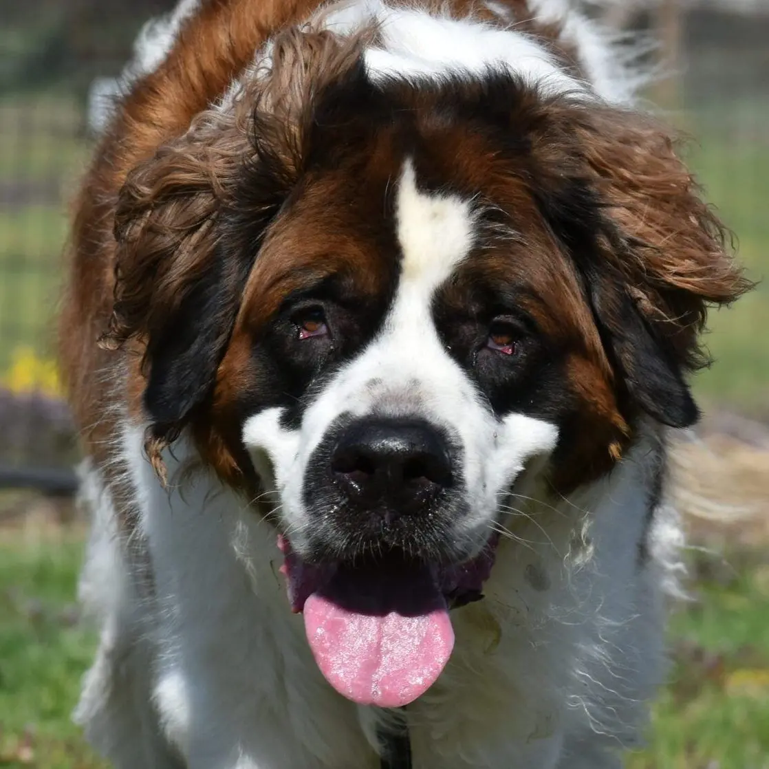 Meet King Alaric, a Saint Bernard with a big heart and an endearing, goofy personality. This sweet boy can be shy and a bit nervous at first, but his affectionate nature shines once he feels comfortable. He tends to bond more closely with women and would do best in a calm, quiet home without children. Alaric experiences separation anxiety and may try to dart, so he will need a patient, attentive environment to help him feel secure. He has good leash manners, though his strength means he needs a confident handler. King Alaric could thrive as an only dog or alongside a similarly sized canine companion. With time and understanding, he will be a loyal and loving addition to the right home.