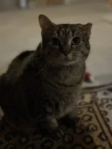 Snorlax came into care severely overweight at nearly 20 pounds and struggling with multiple health issues related to her size. After veterinary guidance and a strict, monitored diet in foster care, she has already lost 4 pounds and her previous hygiene and digestive issues have greatly improved. She is now feeling better than ever and continues to thrive. Snorlax is an incredibly sweet and affectionate girl who loves attention and being close to her people. She will patiently wait to be noticed, but if another cat is getting attention first, she will waddle over with grumpy little grunts and gently push her way into the spotlight. She is full of personality, endlessly funny, and impossible not to love. Snorlax enjoys the company of other cats and would do well with a feline sibling, as long as her signature jealousy is appreciated.