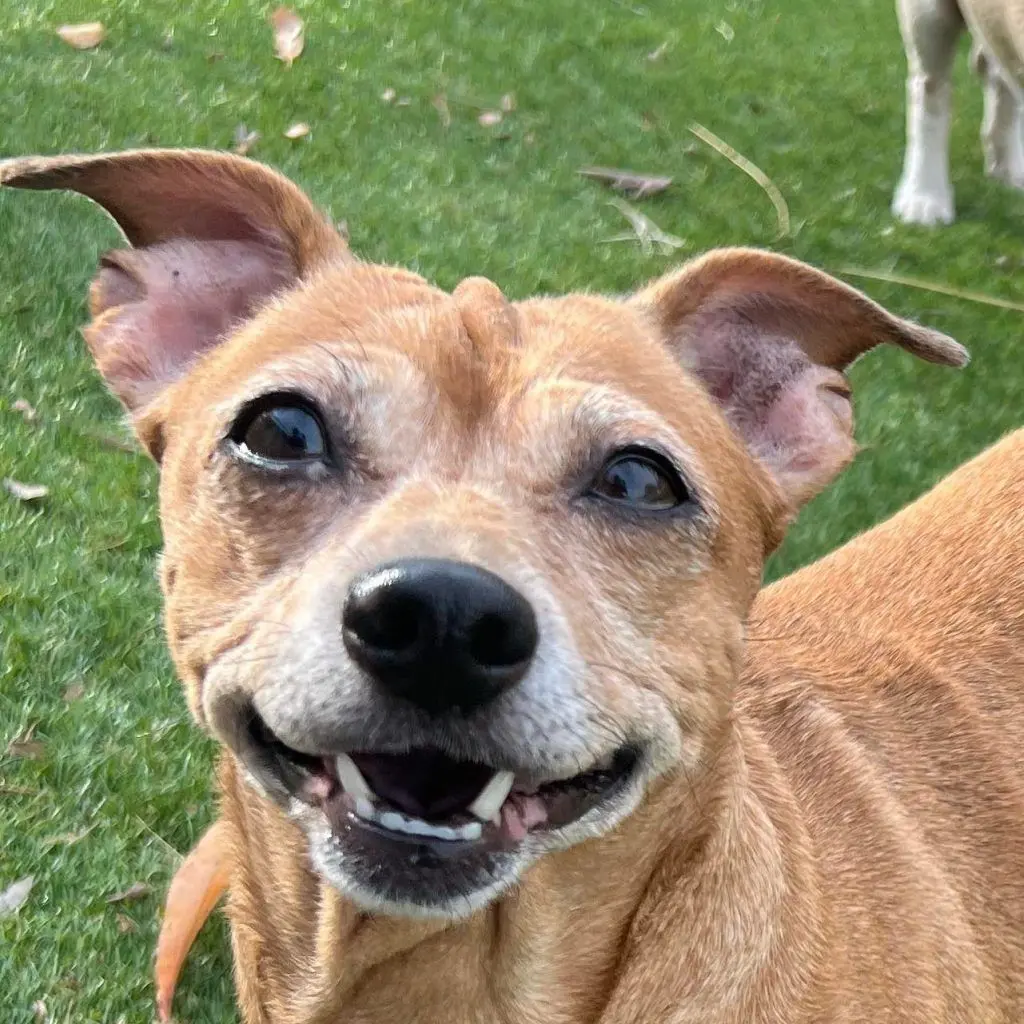 Rinda’s person became homeless and the dogs had nowhere to go. This little one is quite the charmer. Her tail never stops wagging, she dances …